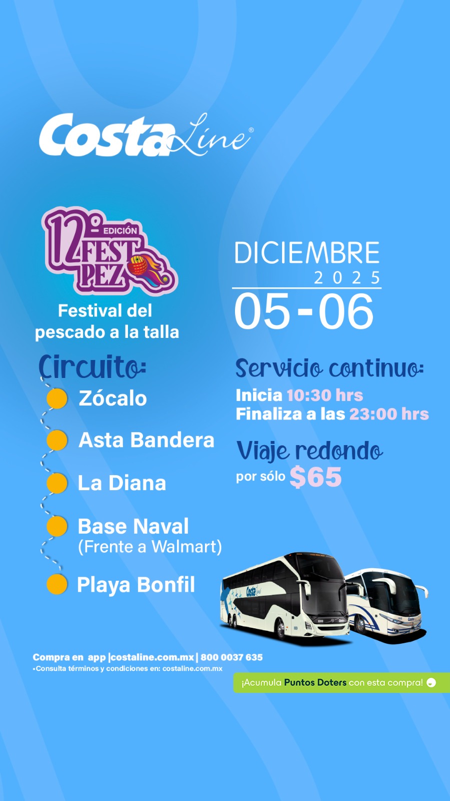 Para facilitar la asistencia, Costa Line ofrecerá rutas especiales de transporte hacia la Playa Bonfil. El viaje redondo tendrá un costo accesible de $65 pesos , con salidas desde puntos estratégicos como: